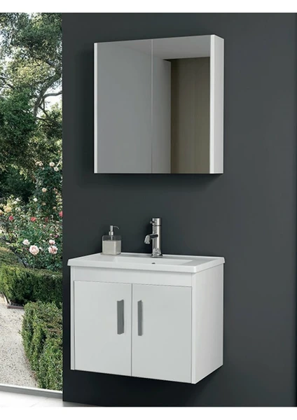 Alt ve üst modüllerden oluşan bu set, kompakt ölçüsü ile küçük ve orta ölçekli banyolarda ideal kullanım sağlar. Üst dolap depolama alanıyla günlük bakım ürünlerinizi düzenli tutarken, alt dolap geniş hacmiyle havlu, temizlik malzemeleri ve kişisel bakım aksesuarlarınız için etkili bir çözüm sunar.
